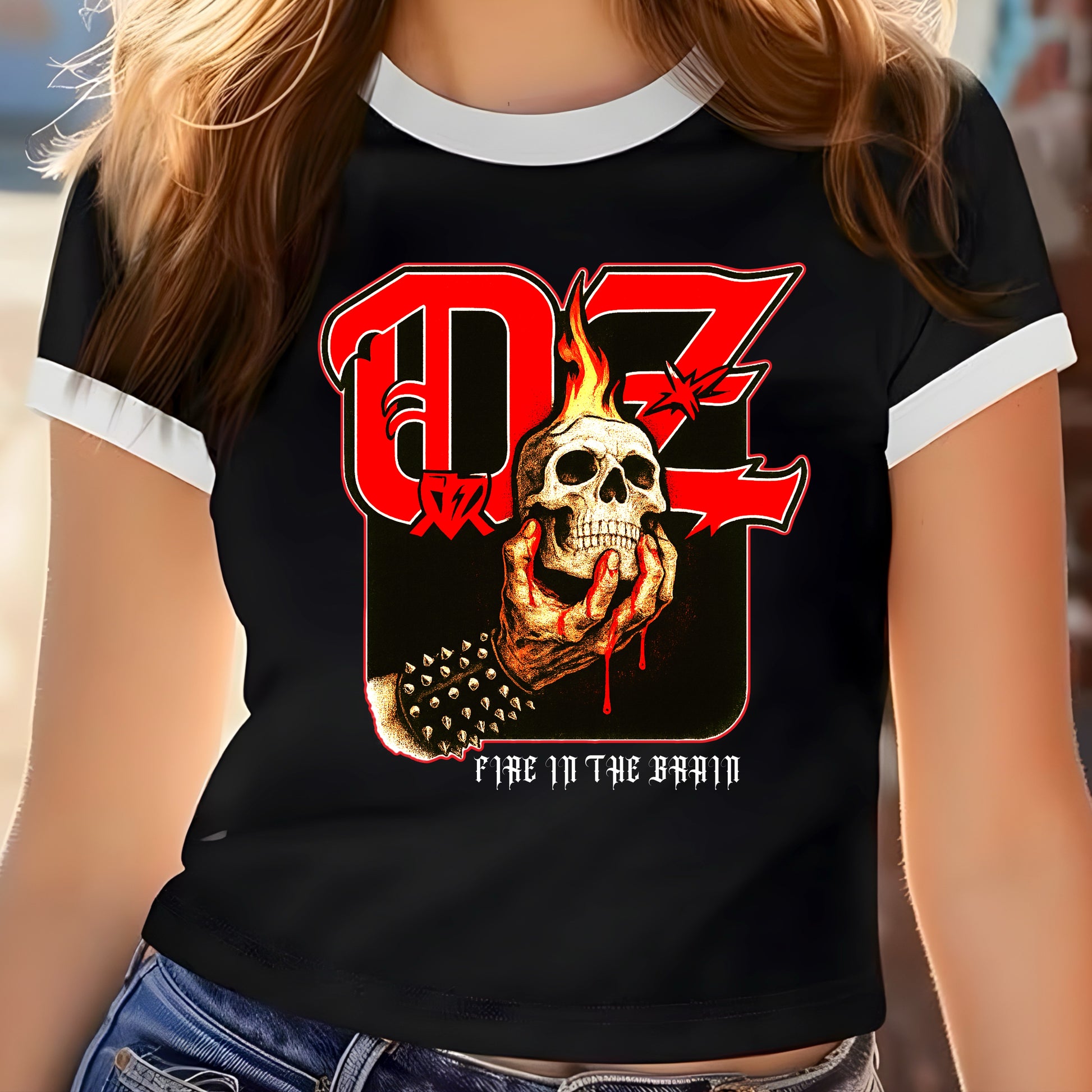 Oz Fire In The Brain White Ringer Crop Top