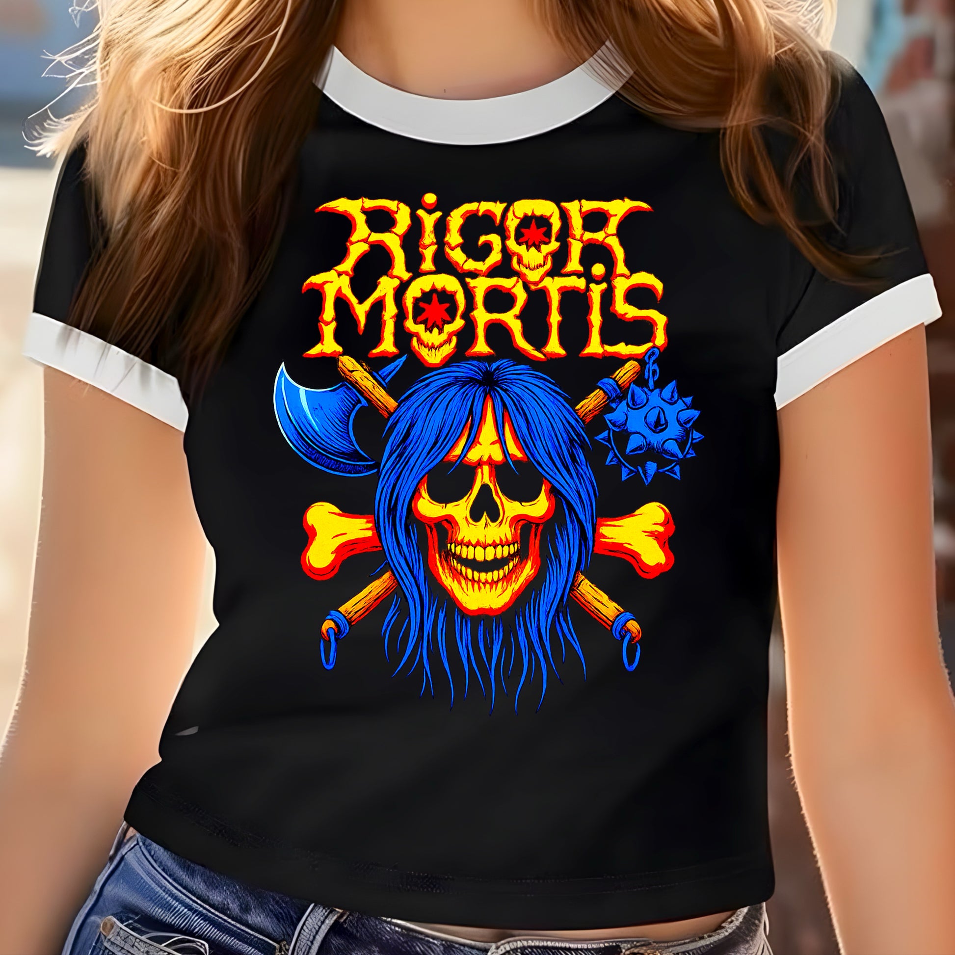 Rigor Mortis White Ringer Crop Top