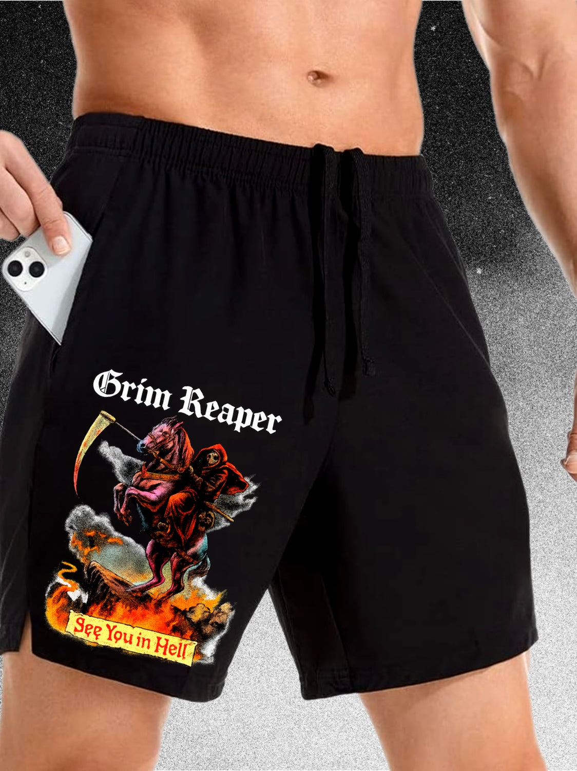 Versatile Gym & Streetwear Shorts (Grim Reaper)